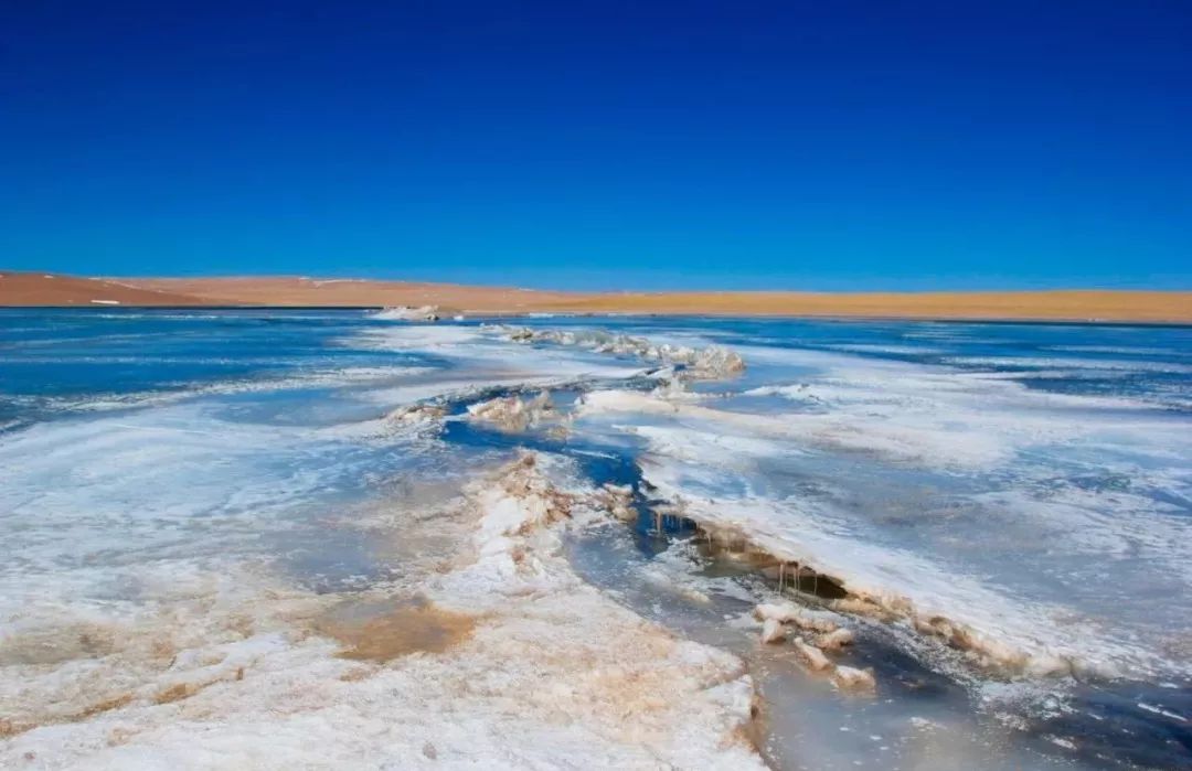 屡过冰河——穿越时节,羌塘的河如源泉河、五泉河、东温河大多冰冻得很结实,河面很宽,少则300米。也有三四条没冻上,需要涉水过河,如洪玉泉河,虽然只有三四十米宽,但水流湍急。