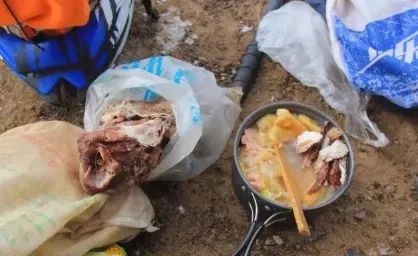 运气好还能遇见穿越的越野车队,一样超级热情,给的苹果和橘子,比牛肉还珍贵。最后两天遇见地质队的大哥,给了我们十多个鸡蛋和未放调料的卤肉,从不吃肥肉的我,一口气吃五块也不觉得腻。