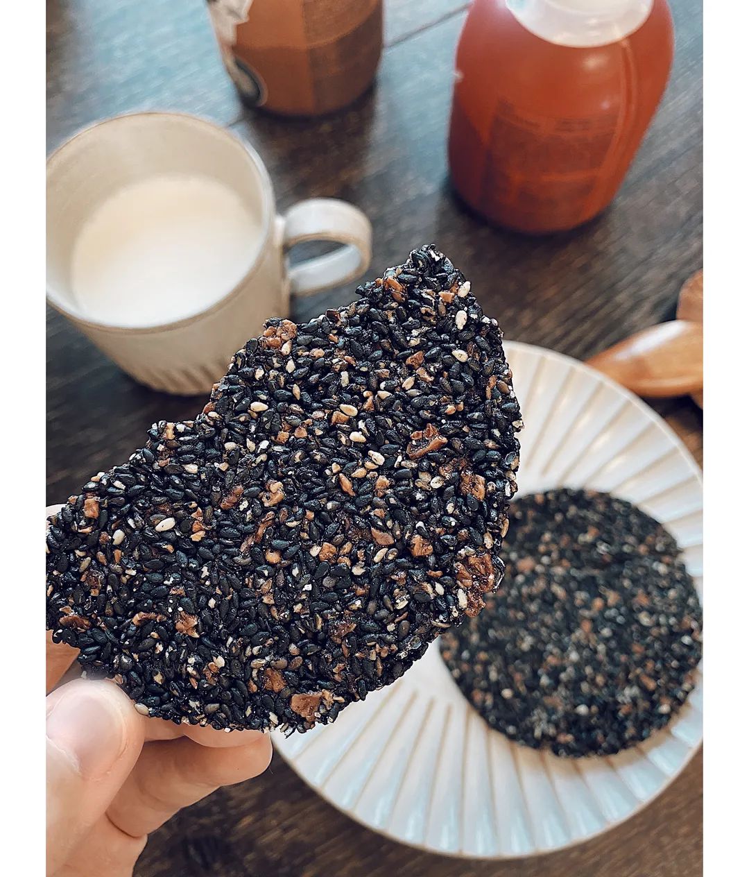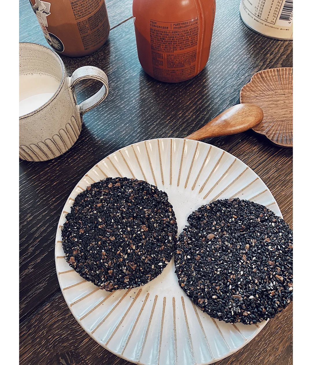 黑糕里有补肝肾润五脏、生津通肠的黑芝麻,有滋阴养血的黑桑葚,活血消胀的黑豆,富含花青素的黑枸杞,含氨基酸和多酚类的黑蒜,核桃,利水的南瓜子,葡萄籽油,还有补水润燥的蜂蜜。