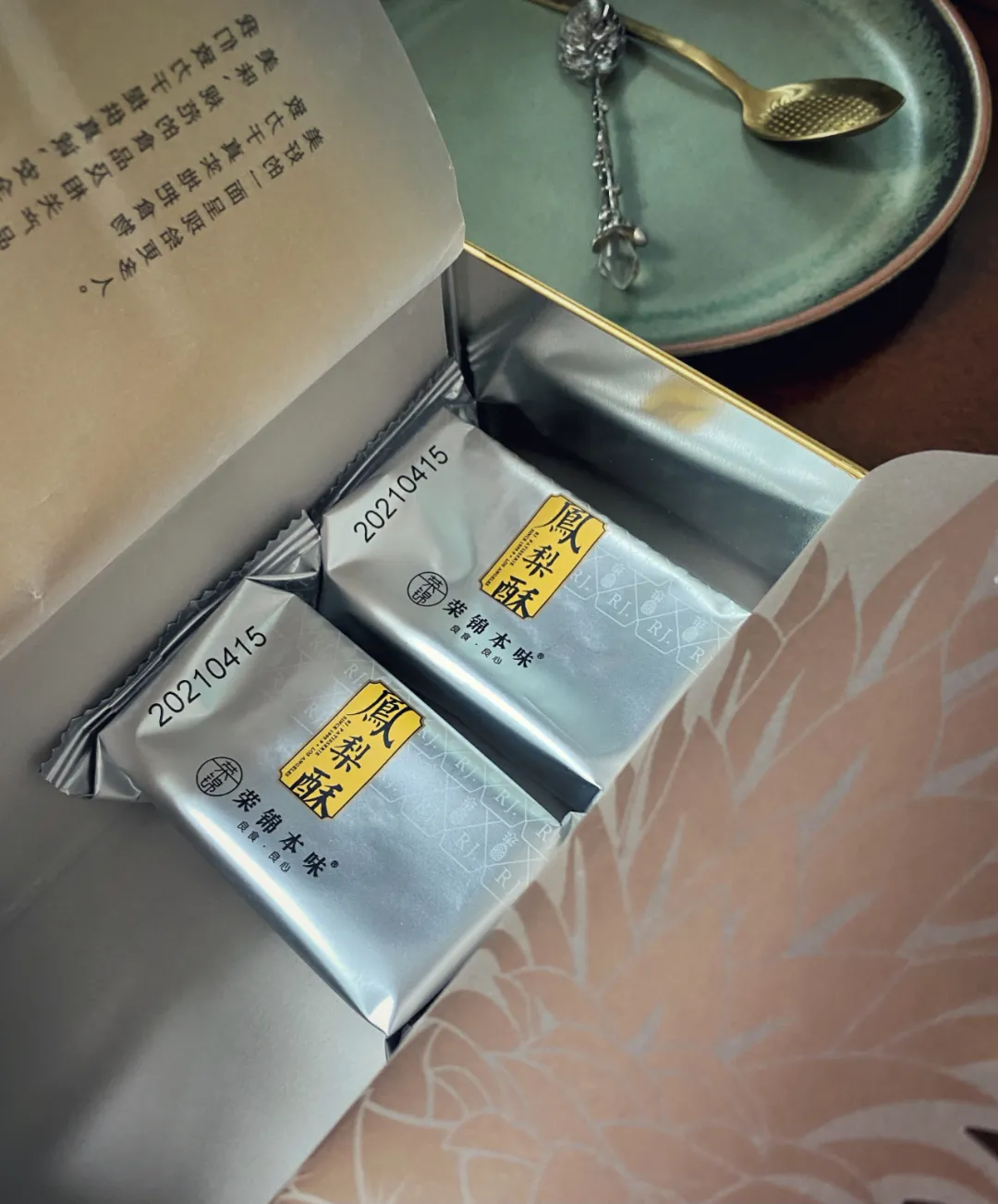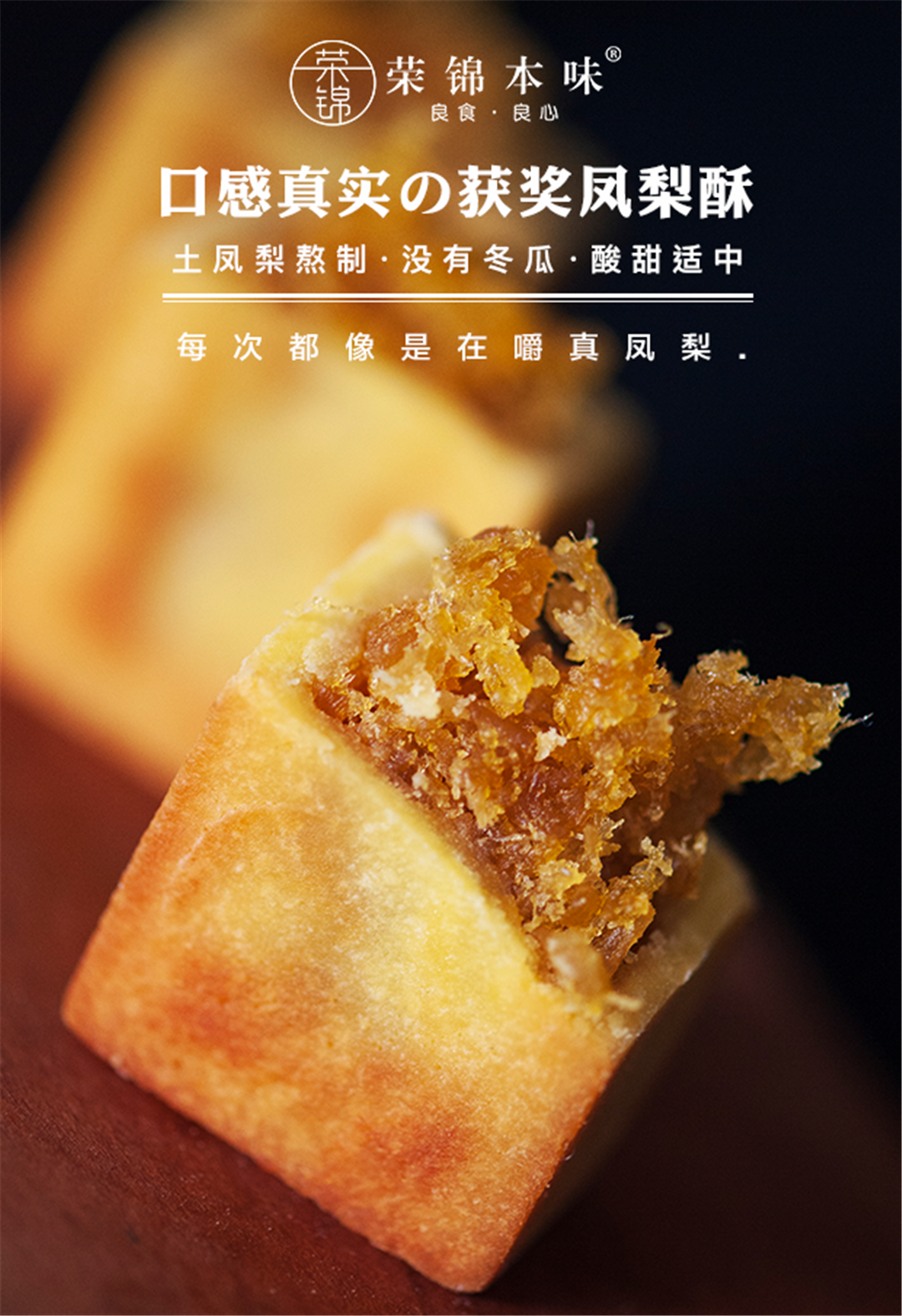 上次介绍过“茶点必备”鲜花饼,但如果有一样在我心里能超越它,那就是荣锦凤梨酥了。台湾凤梨酥大赛金奖作品。