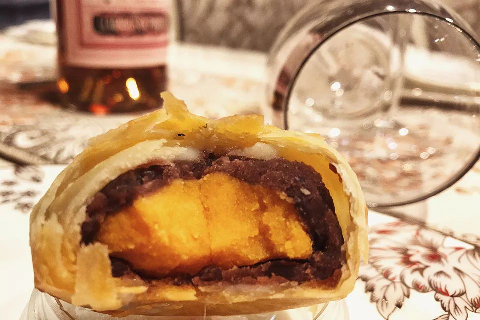 它个头适中,外皮很酥,焦黄上撒着黑芝麻,颜值满分。里面的雪媚娘皮很软,口感Q弹,它的作用就是中和整体口感的。