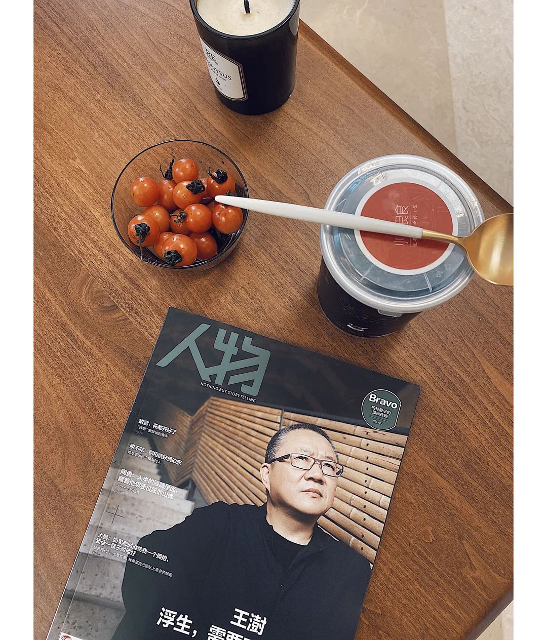 这样每天路过时,哎?很想翻杂志,坐下来顺便吃两勺吧。如果每次还要去取勺子,大概率就坚持不了。