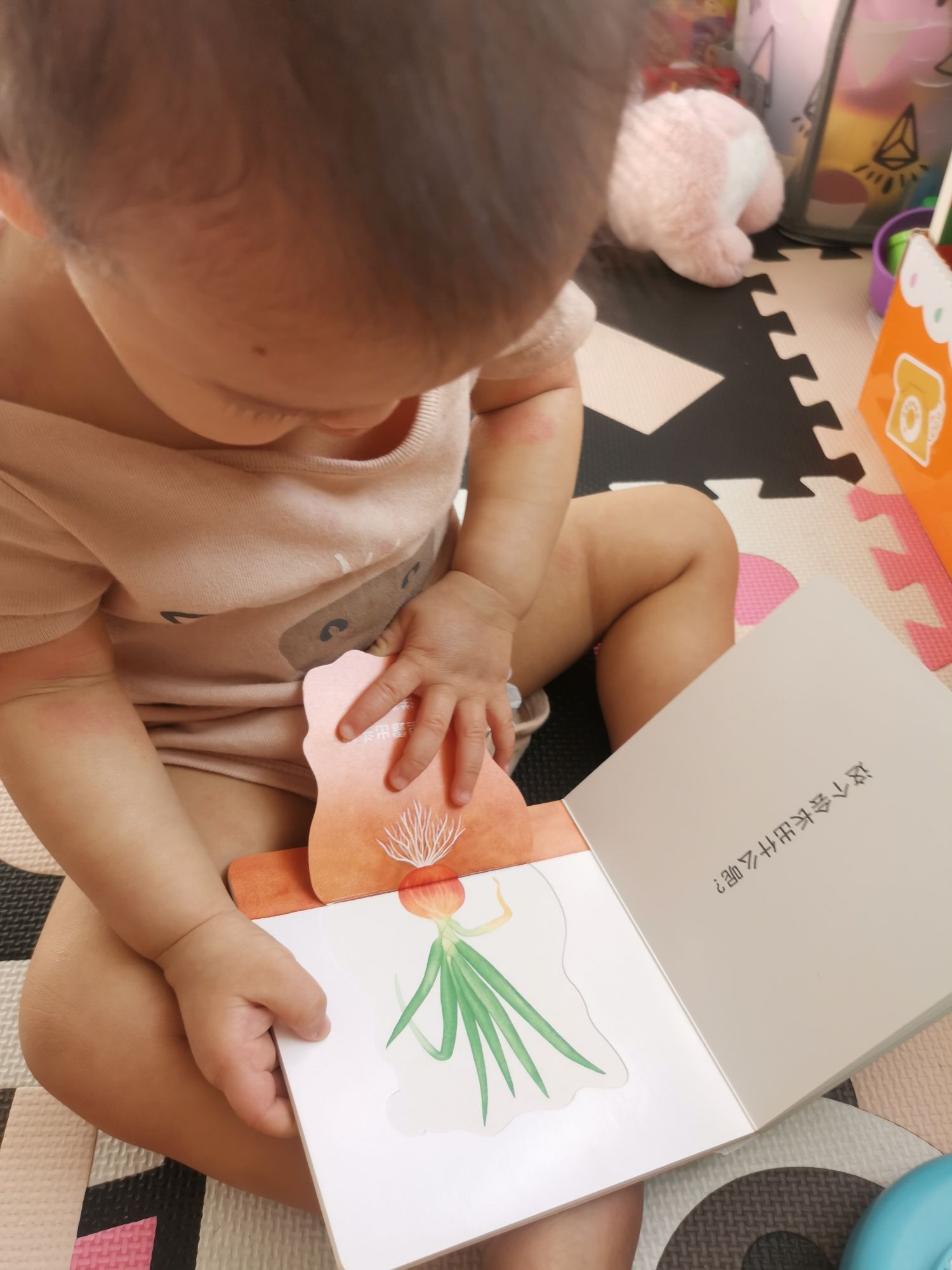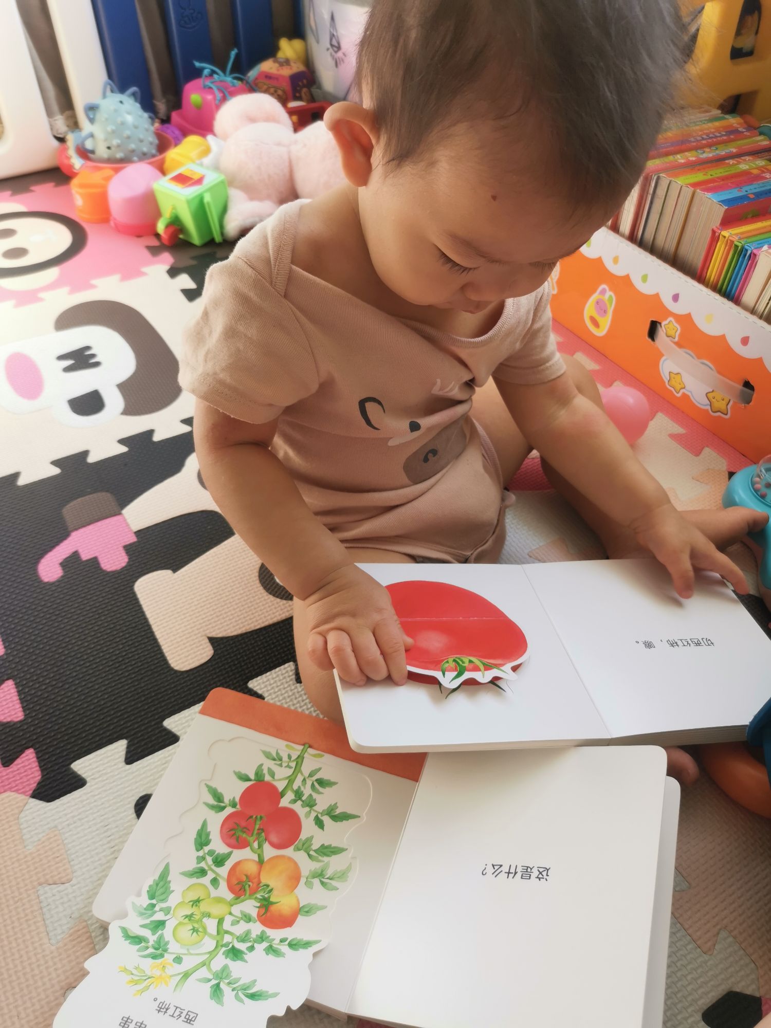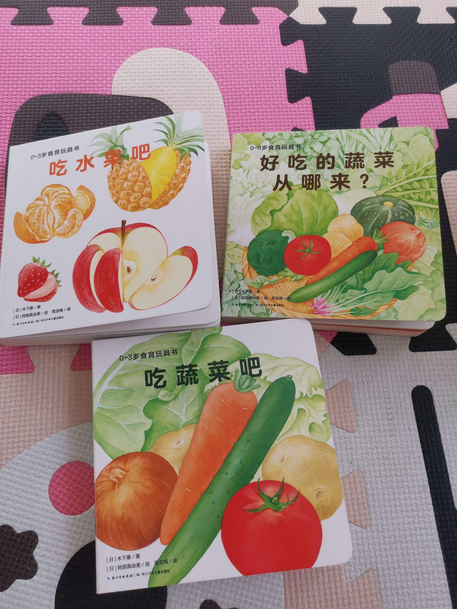今天是宝宝自己挑的书,居然把食育玩具书3本全都拿出来让我给他讲。