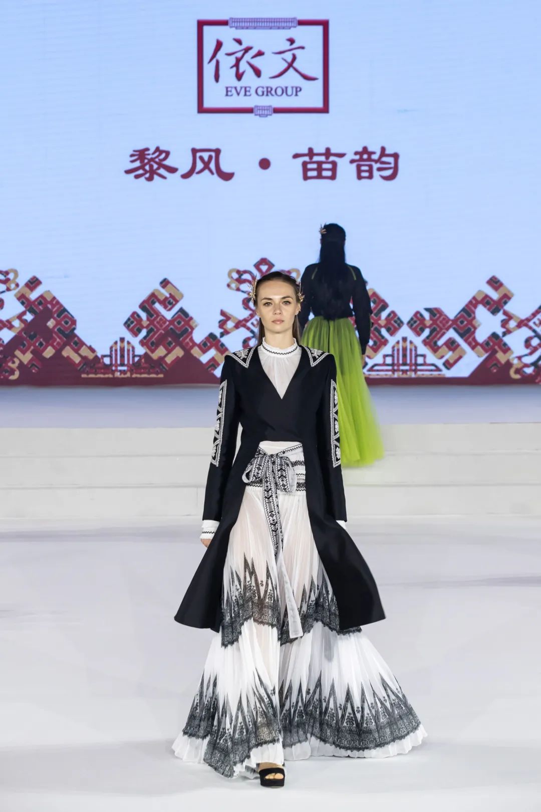 去年,由依文集团主办的“黎风苗韵•绣梦中国”2021 EVE CINA主题时装秀亮相2020年中国国际时装周舞台,10名来自琼中的黎族、苗族手工艺人,现场展示了织锦、苗绣技艺;来自中外的模特轮番展示了近百套以黎族刺绣、苗族蜡染元素为主要设计灵感的时装,斑斓的色彩、神秘的图腾,如同穿在身上的人文历史画卷,令现场观众惊艳不已。
