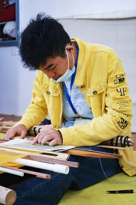 来自和平镇林田村委会合口村的陈元泽是一名大学在校生,高中时,他通过学校的黎锦兴趣班了解到黎锦技艺的魅力,得知培训班消息后,他挤出了实习的时间前来学习。