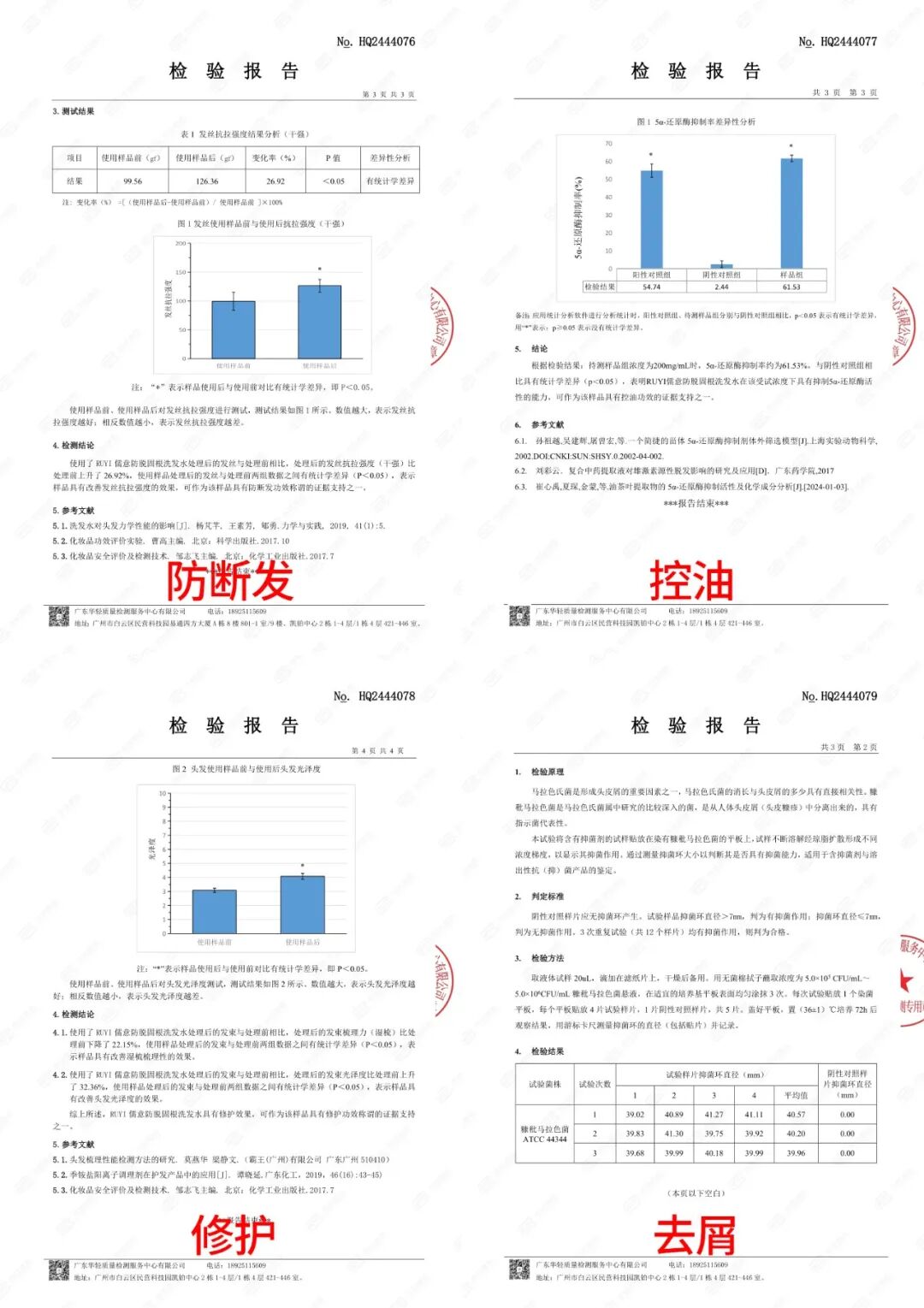 另外,还有防断发、控油、修护、去屑4大功效报告一应俱全!