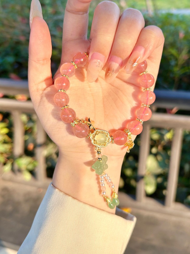 甜美少女风的小手链,淡淡粉色在秋冬显得超级明媚