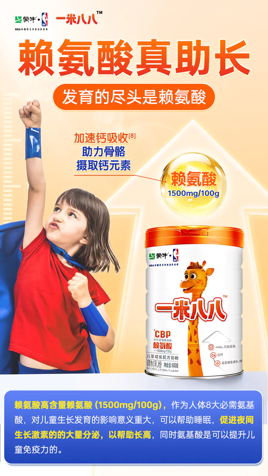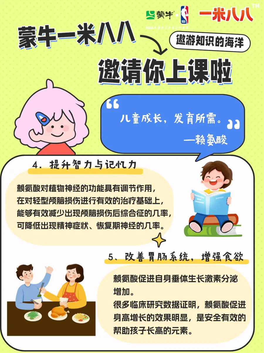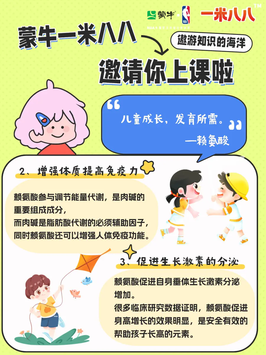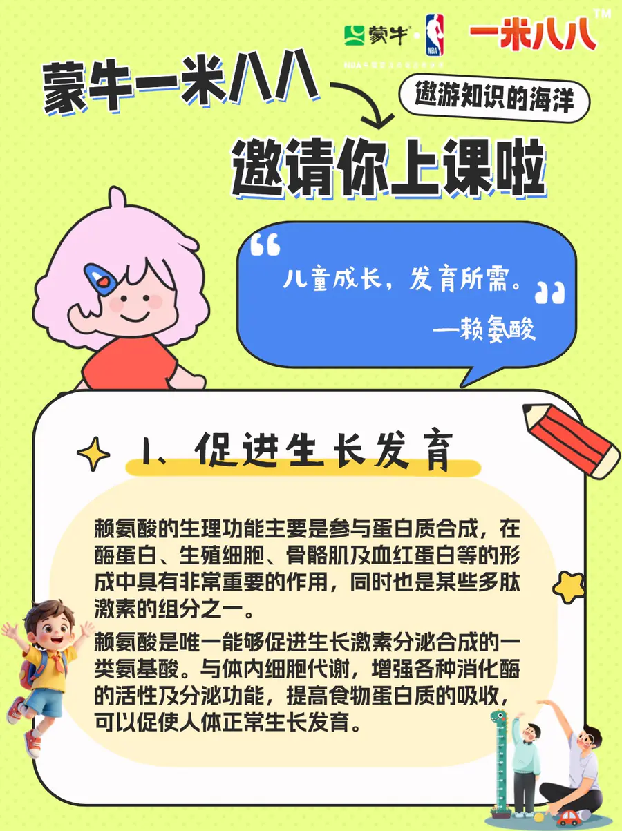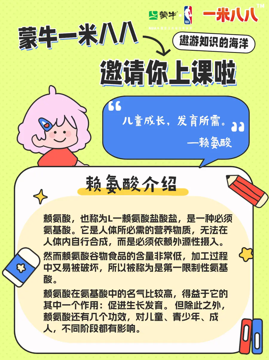 众所周知蒙牛一米八八奶粉中含有1500mg赖氨酸🧬如此高剂量的赖氨酸到底对孩子的成长有何好处呢🤔这篇小科普家长请收藏👇🏻