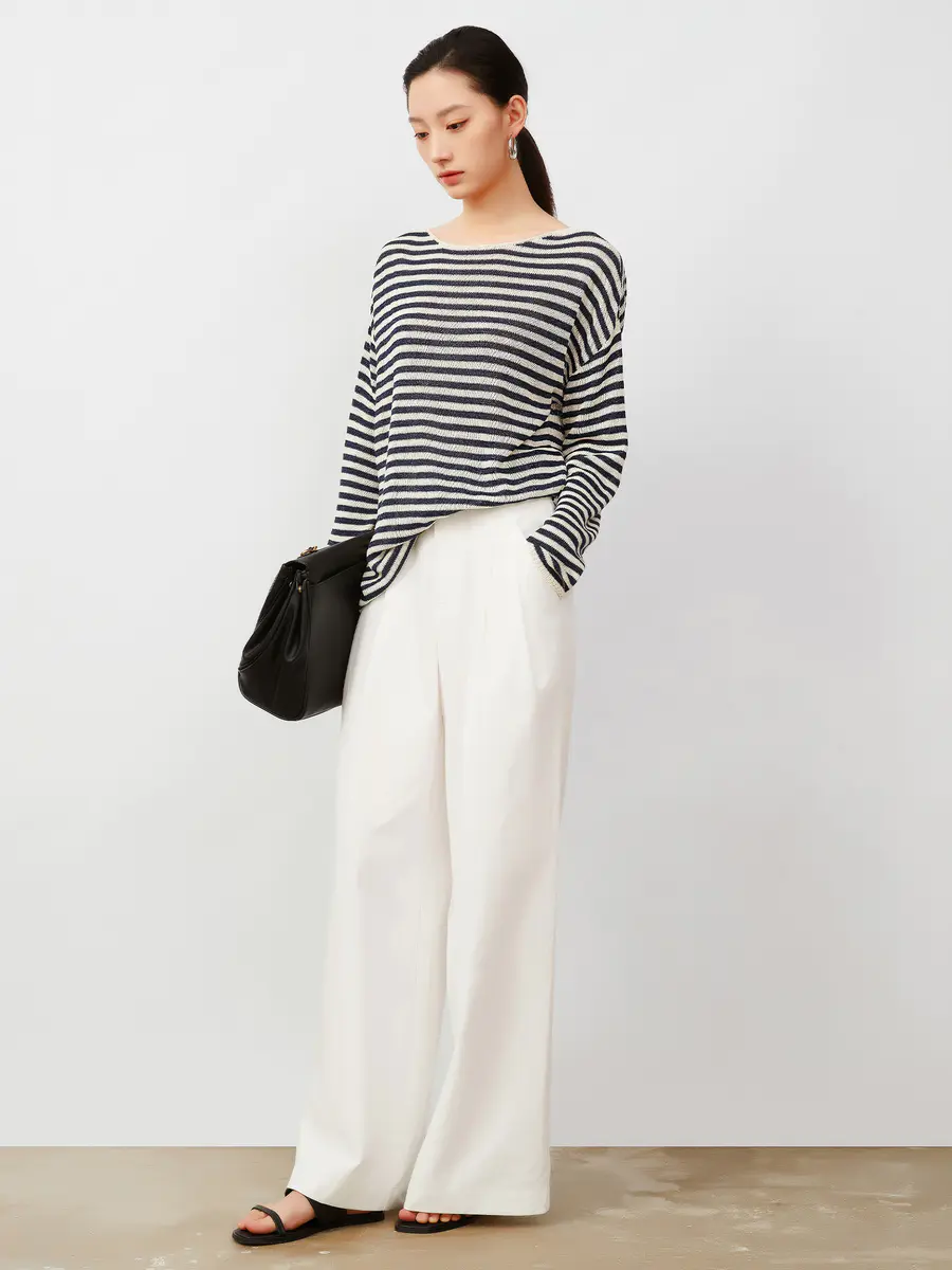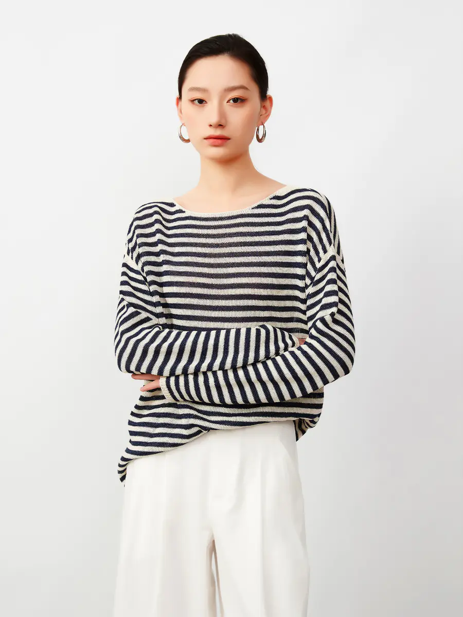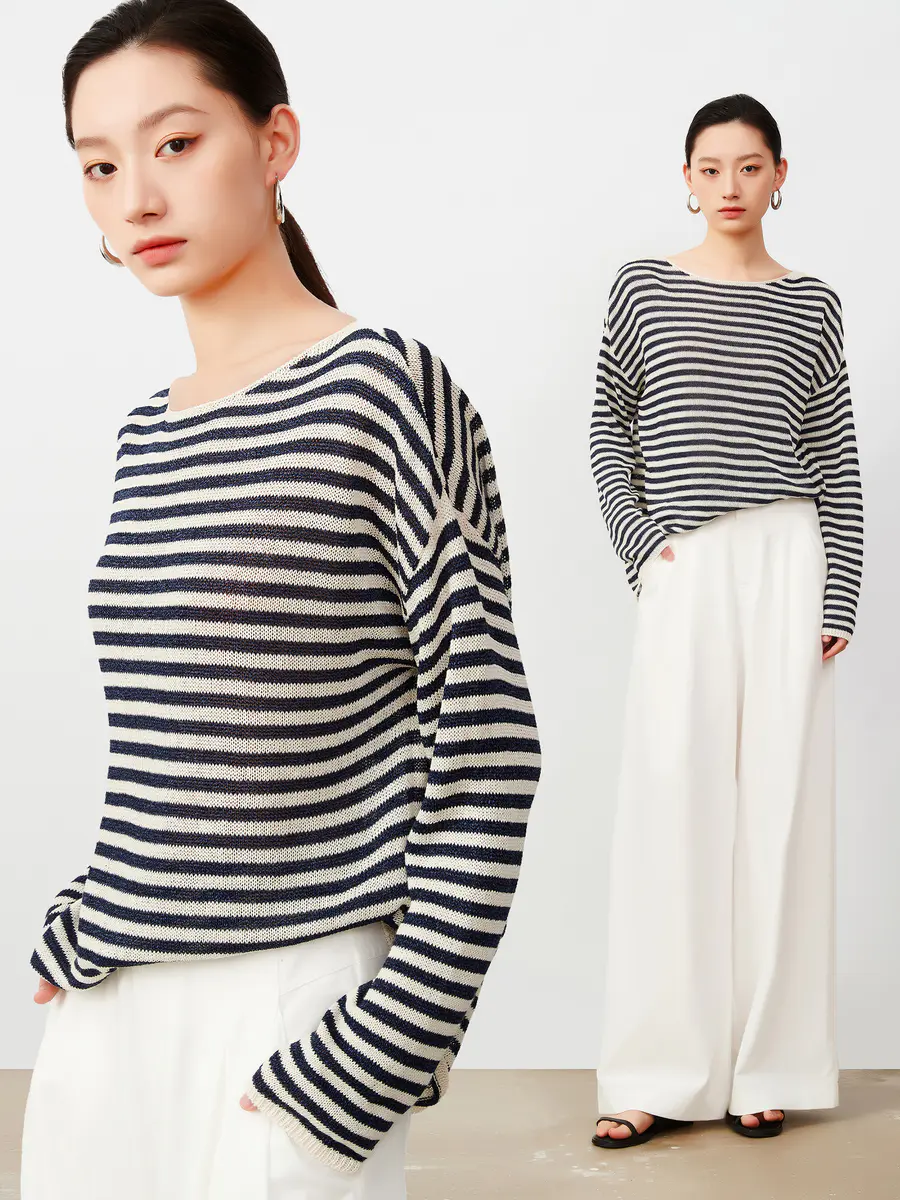 慵懒早秋 和纸纱条纹针织衫
