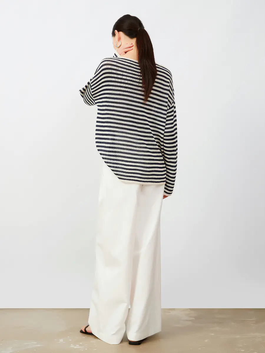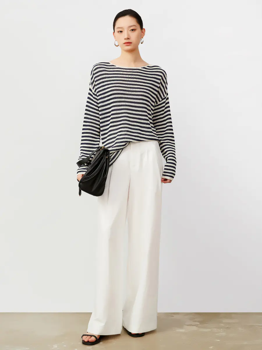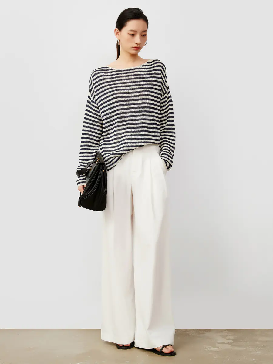 慵懒早秋 和纸纱条纹针织衫