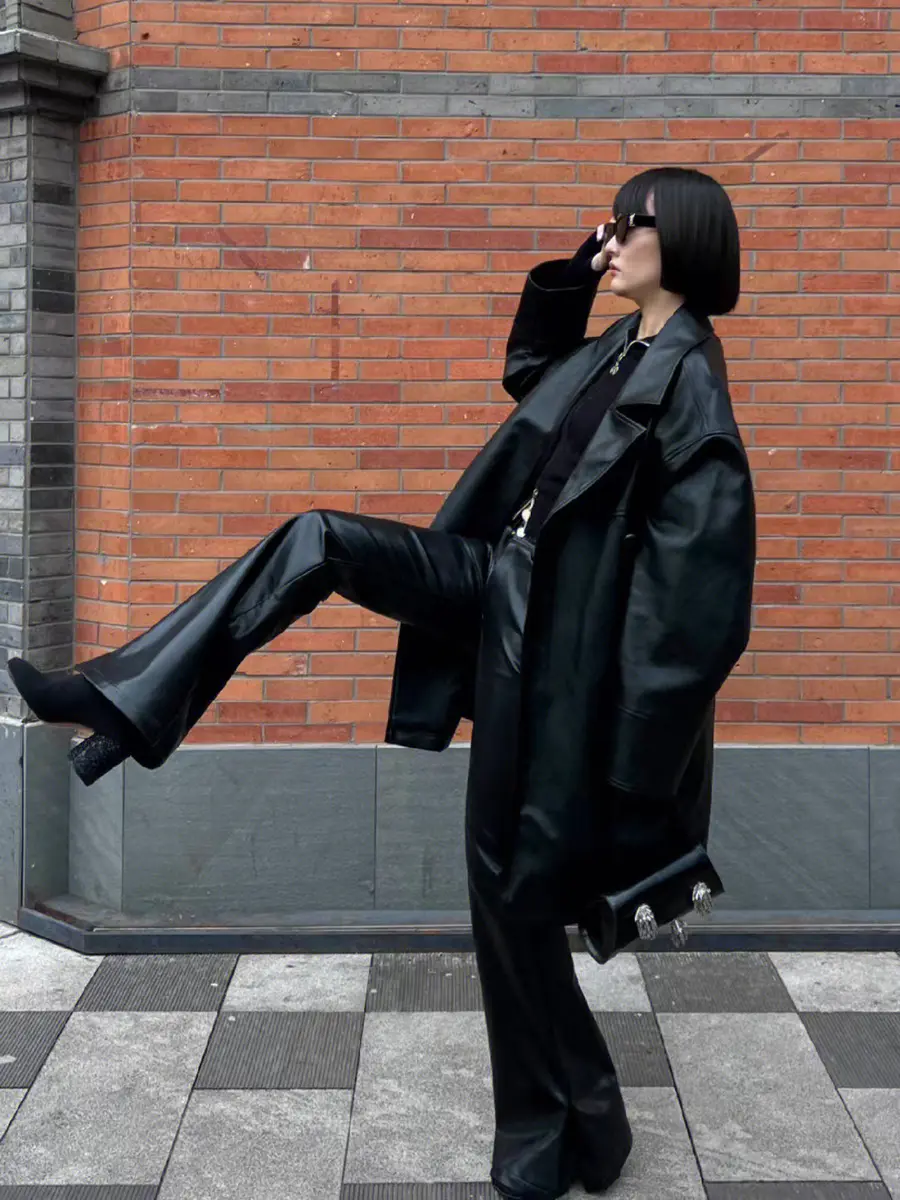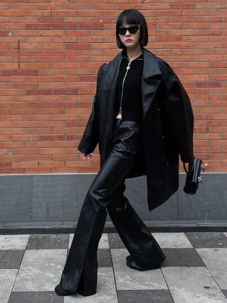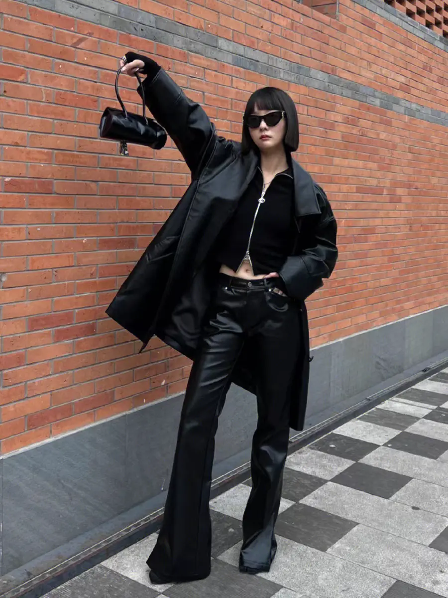 基础中长款皮衣ootd👍秋冬不会出错系列