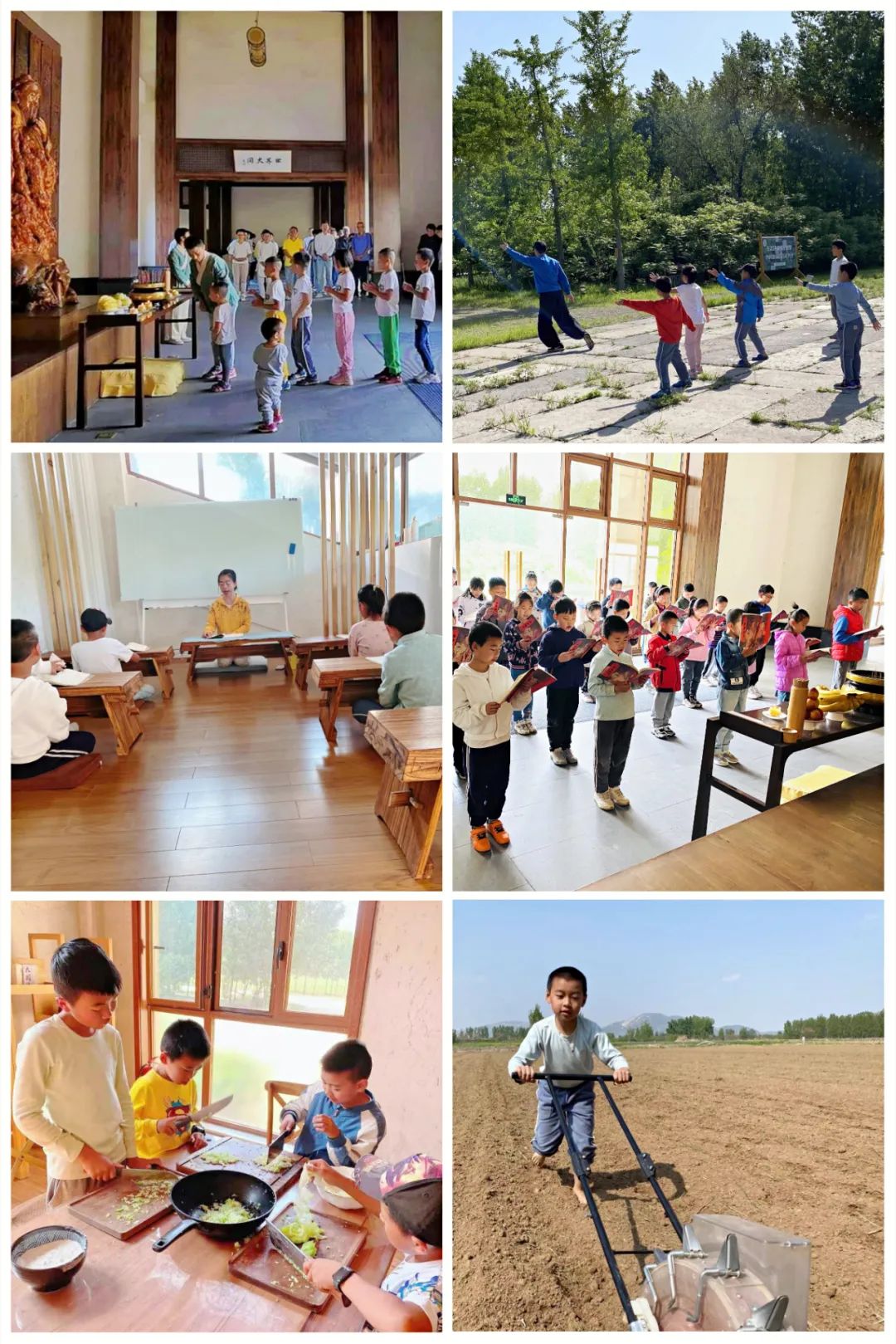 自然探索夏令营:圣贤经典诵读、太极拳、每日感悟分享、田野静行、大地冥想、手工DIY、自然笔记、观察日落、闻香识草、夜观、星空故事会、植物标本、田园农事课、田园烹饪课、帐篷露营、冥想小屋建造、篝火晚会、泥巴仗等……
