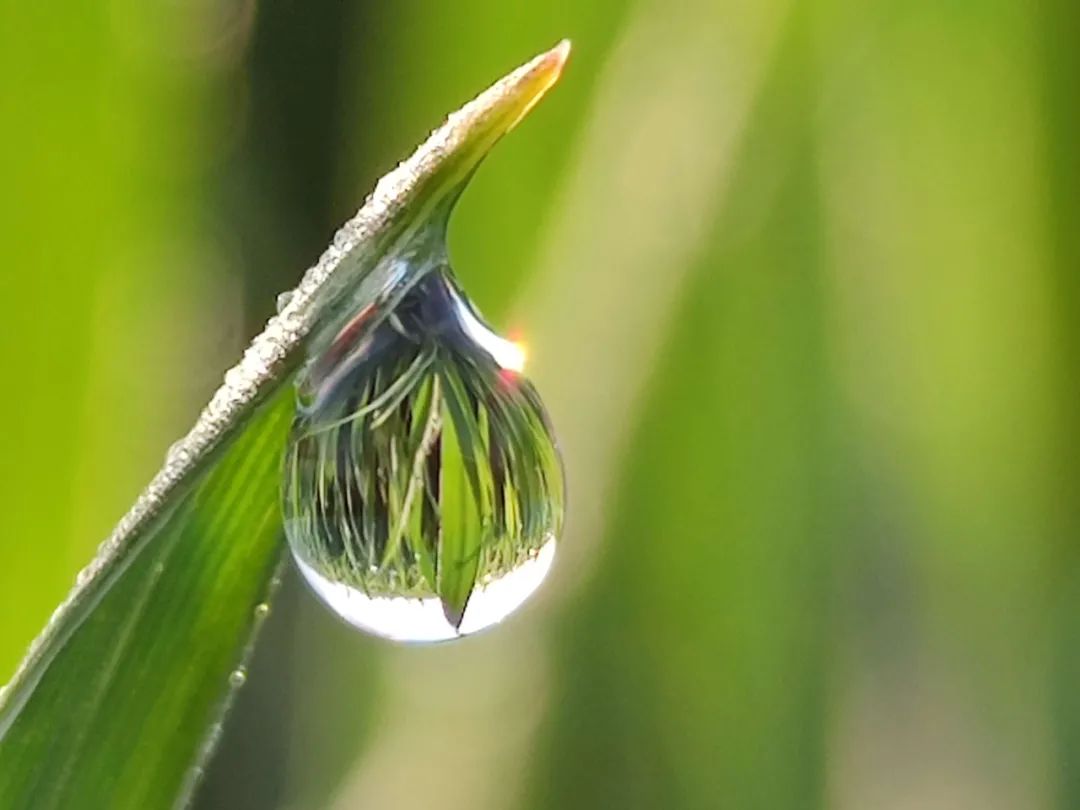 看露珠折射朝阳的光芒