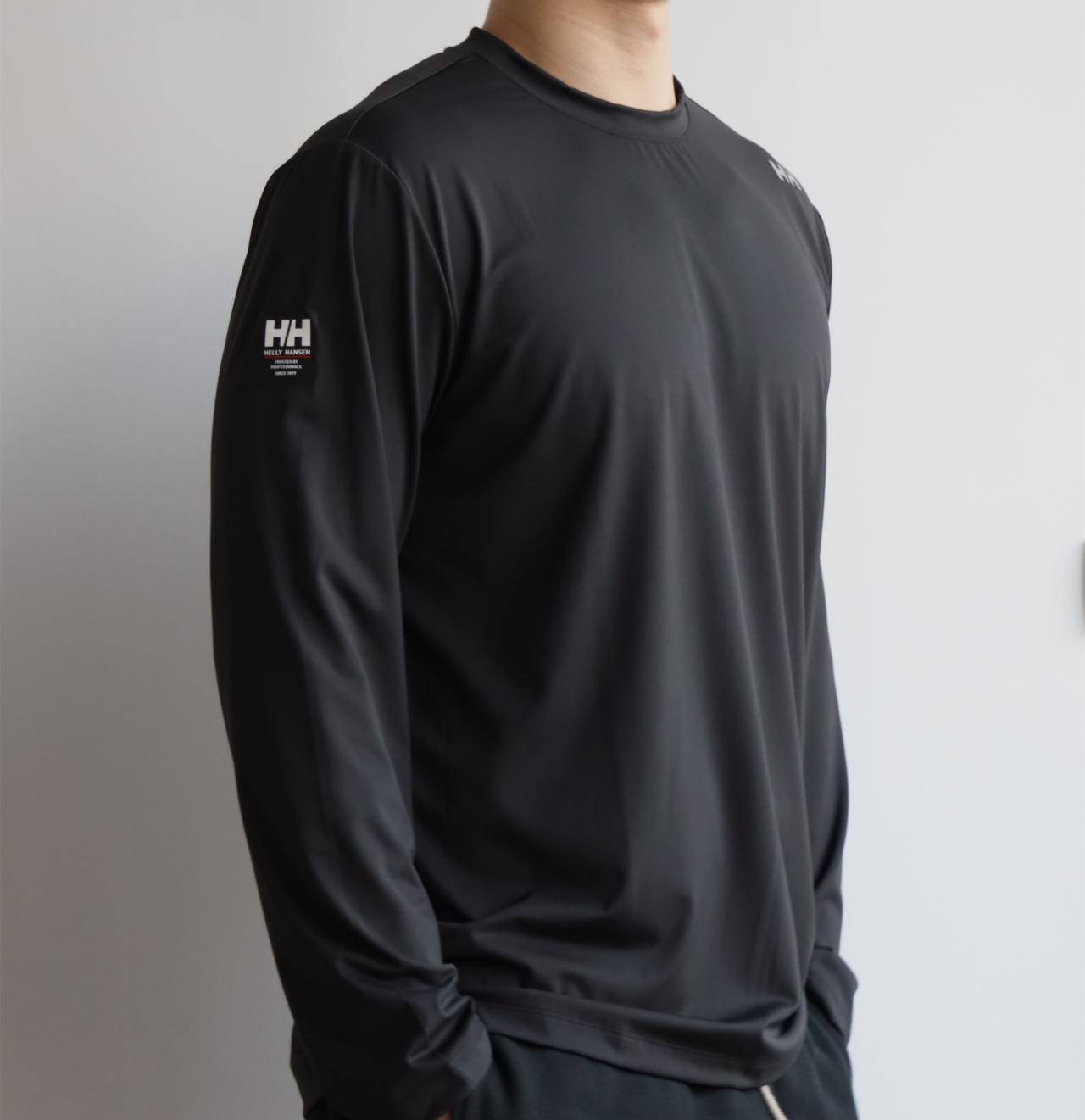 基础运动长袖T恤,面料超大弹力,立体字母压花装饰