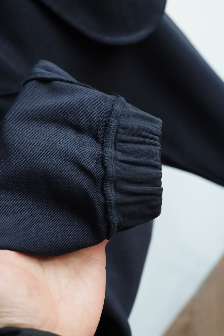 袖口和下摆的加宽螺纹也是平纹丝光面料