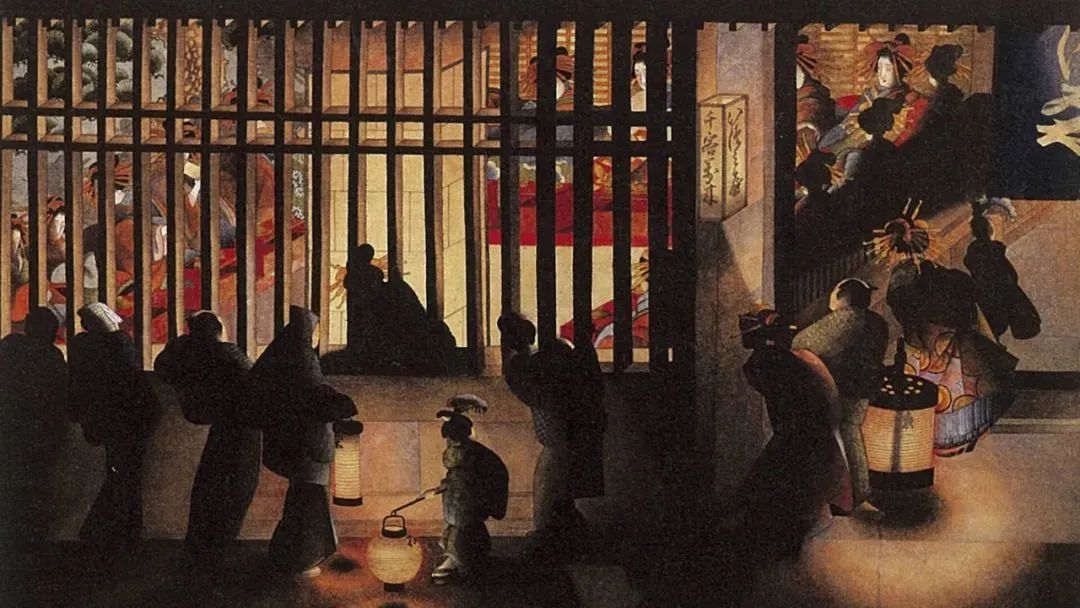 ● 浮世绘画家葛饰应为的《吉原格子先之圖》