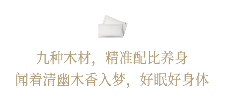 檀木、崖柏、松木、菩提、木荷等九种养身木材打磨成珠,再填充入枕。