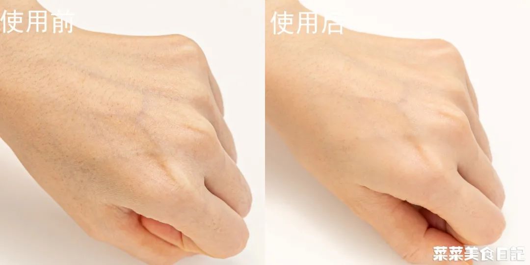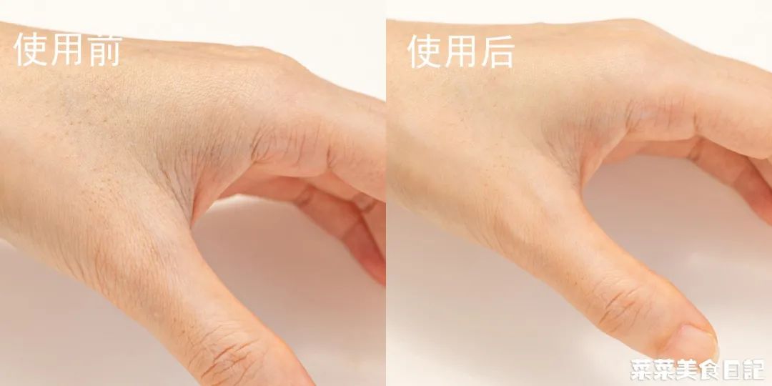 坚持使用一段时间,双手肉眼可见细腻了不少,虎口的细纹也淡了些。