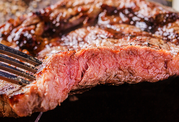 也叫肉眼牛排,取自靠近胸部的肋肌部,肉质嫩度仅次于菲力,大理石纹多且分布均匀,中心部位有一块明显的油花。可说是最受欢迎也最被人熟知的牛排部位,台湾一般称之”沙朗牛排”。建议烧烤到5~7 分熟,把油脂烧透,散发出牛油香味来吃是最美味的。