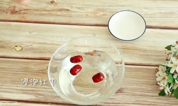 用水浸泡红枣。红枣具有补虚益气、养血安神、健脾和胃等功效。红枣用水浸泡后熬汤的口感更加香甜。
