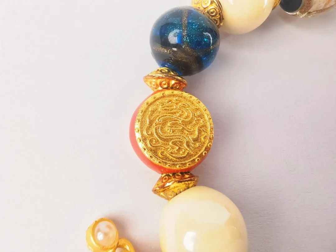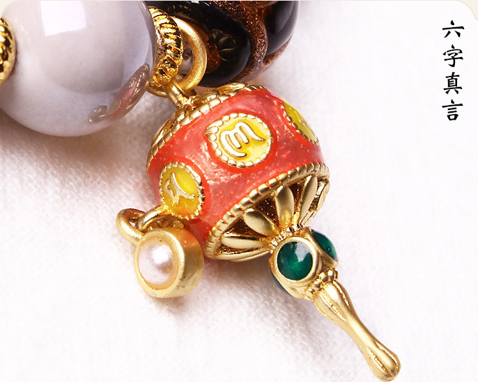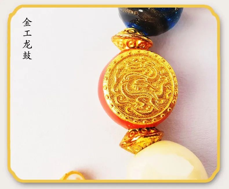 龙鼓笙笙香灰琉璃手串里的龙鼓是由金银细工制作技艺省级代表性传承人申世海大师以10mg999足金制作而成,造型精美,寓意吉祥,是难得的艺术品!