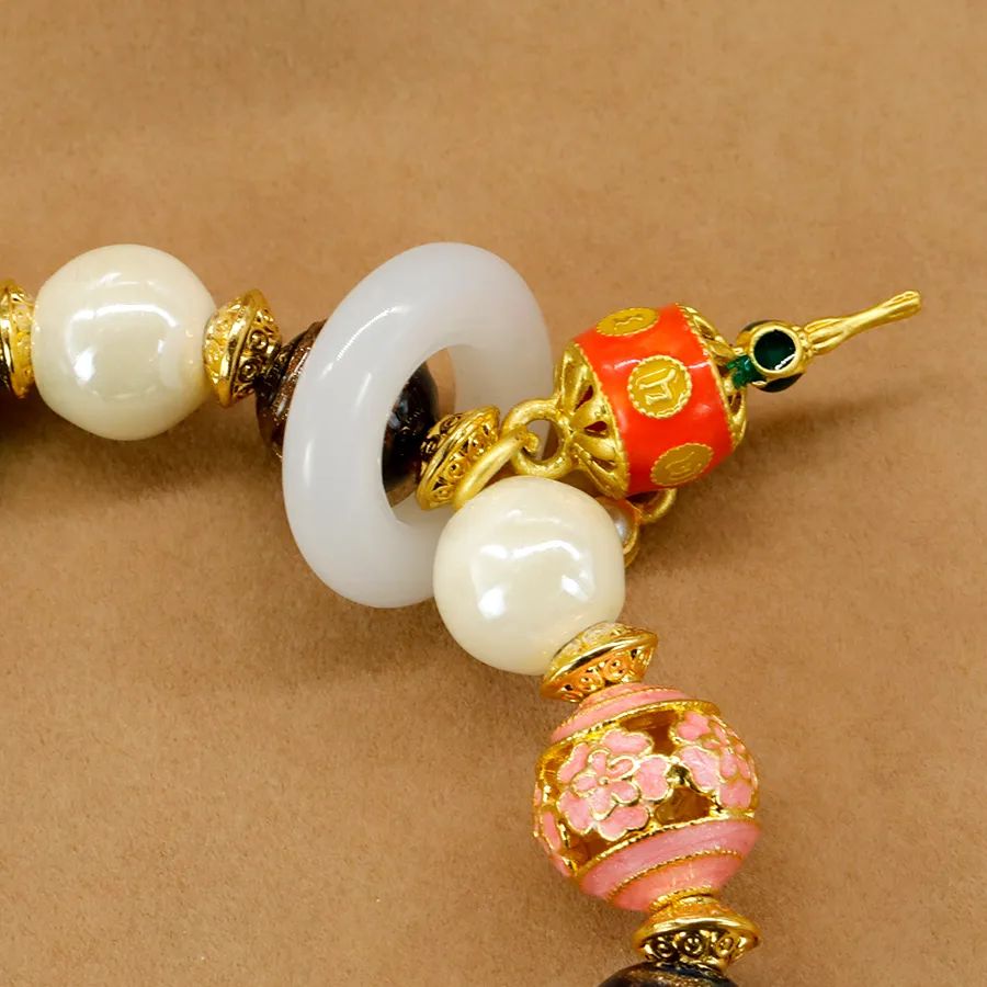 白色玛瑙跑环,选用玉髓精雕细琢,造型精美,使得手串更加灵动且富有魅力。