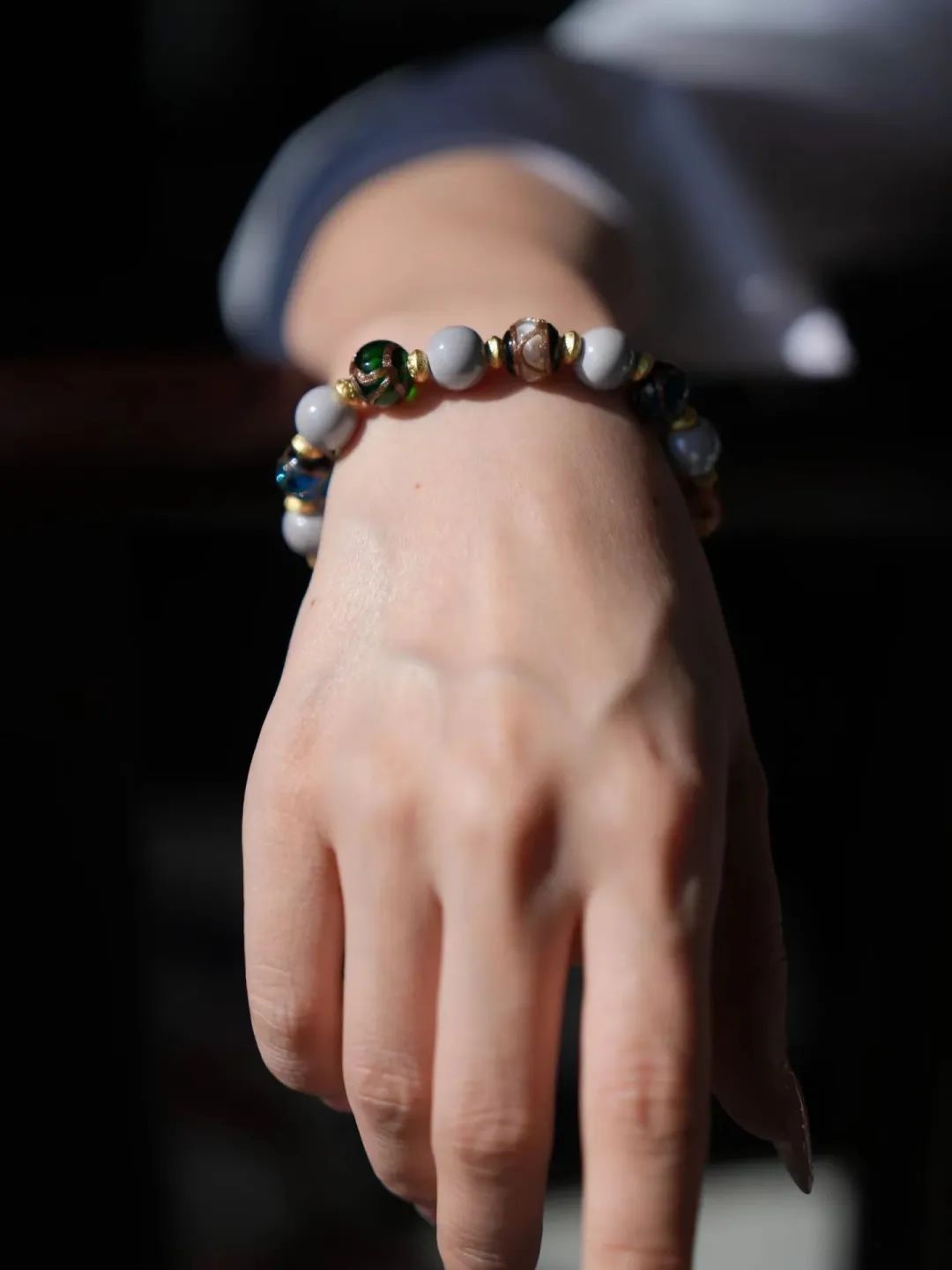 好看的同时,寓意吉祥美好。对于奉行“颜值至上”的人来说,精致的栖霞寺香灰琉璃手串已经成为了日常上佳搭配单品。