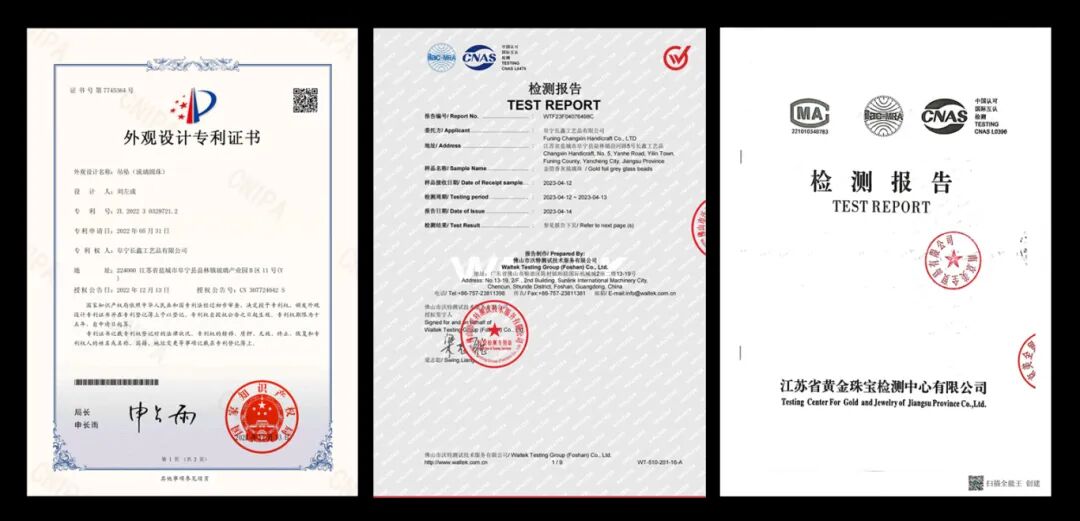 拥有外观设计专利证书(ZL 202230329721.2)、以及贵金属鉴定证书。