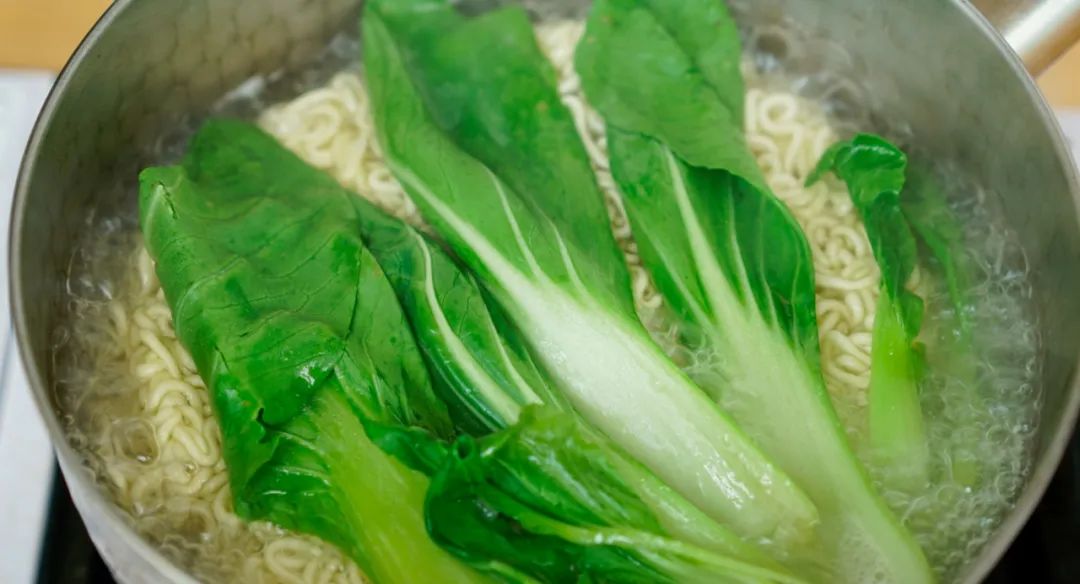 ▼ 3.煮泡面:锅中水开煮泡面,顺便烫个青菜。