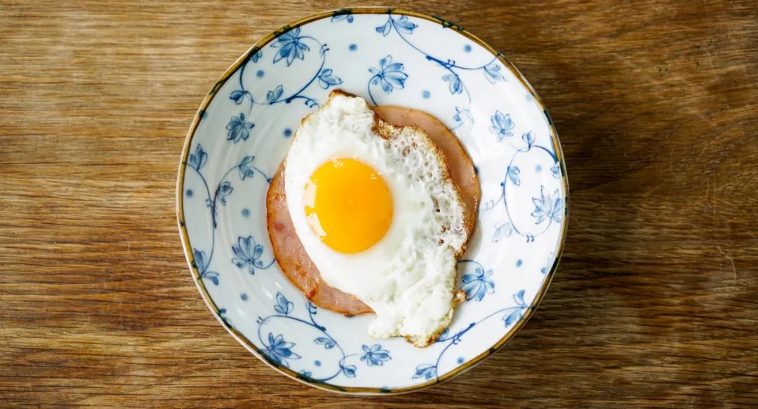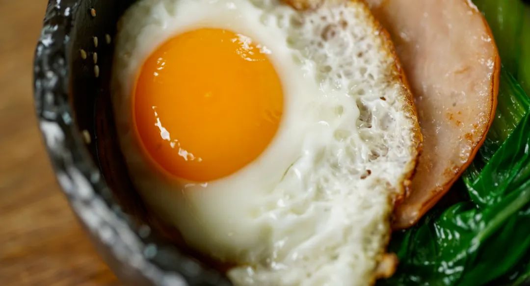 ▼ 4.装盛享用:摆上煎好的荷包蛋和火腿就完成啦~食材丰富,营养均衡,一人食饱饱的。