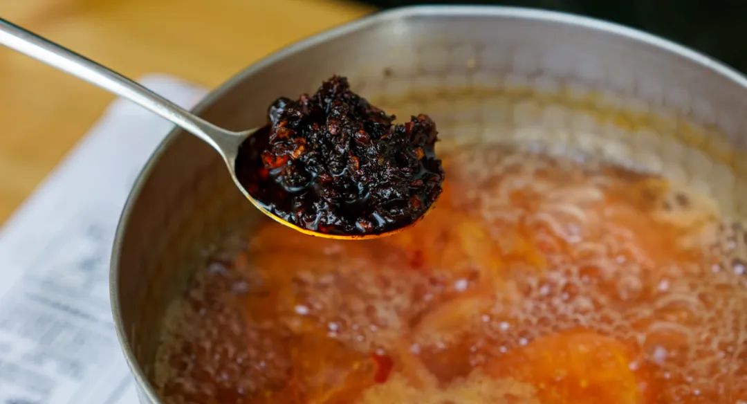 加入老干妈继续煮,煮到老干妈的味道融入汤汁里。