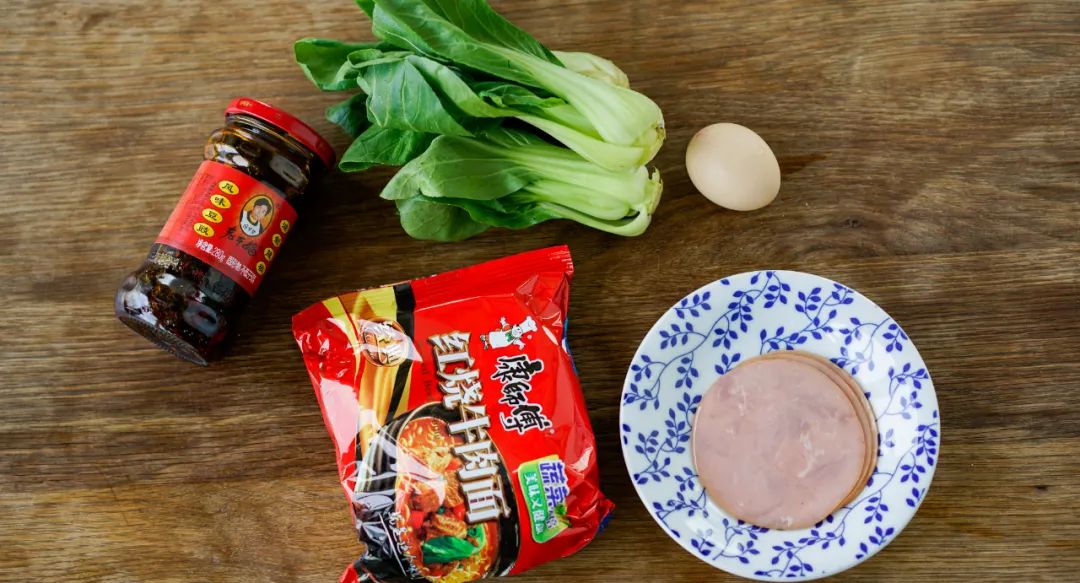 火腿片 2片 / 方便面 1包 / 蒜 1颗