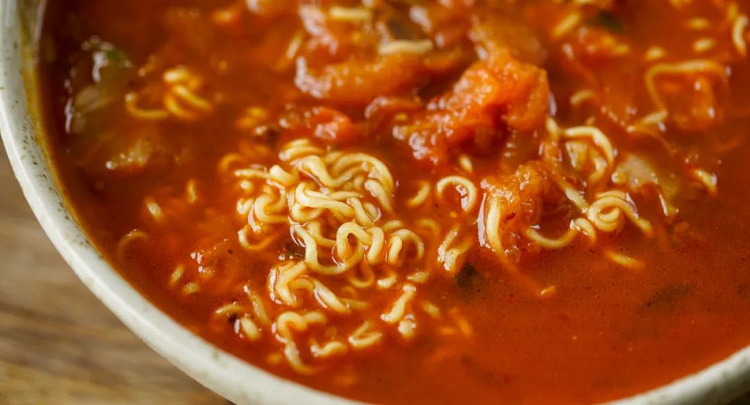 番茄自带一点酸甜,红油油的汤汁十分勾人食欲。泡面自带的诱人香气有番茄和老干妈的加持,简直美味翻倍!以前总觉得方便面闻着香,味道还欠缺一点什么,吃了这碗泡面才知道缺的是灵魂~