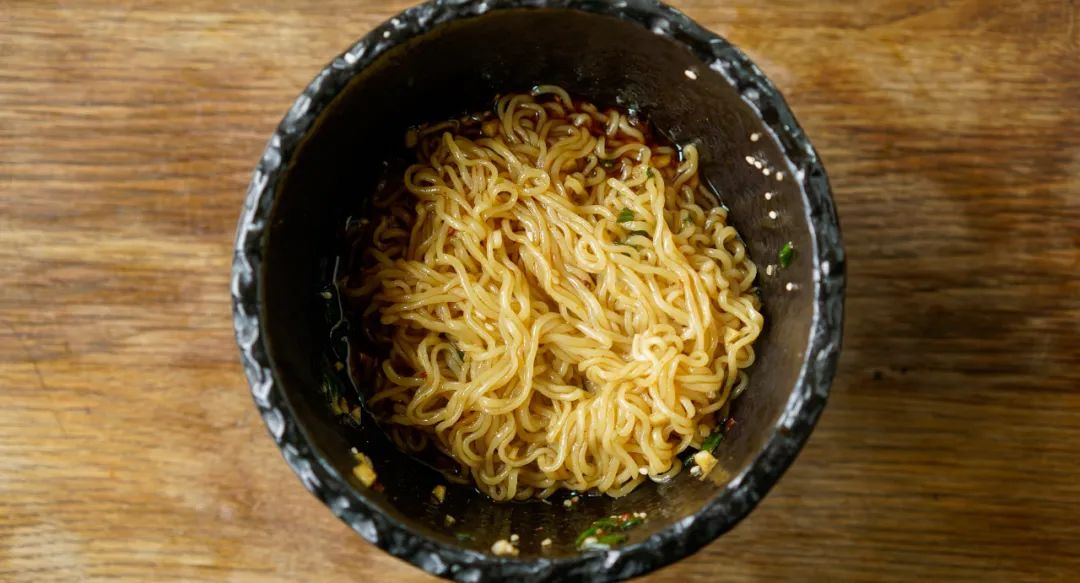 把煮熟的泡面放入酱汁的碗中,搅拌均匀。