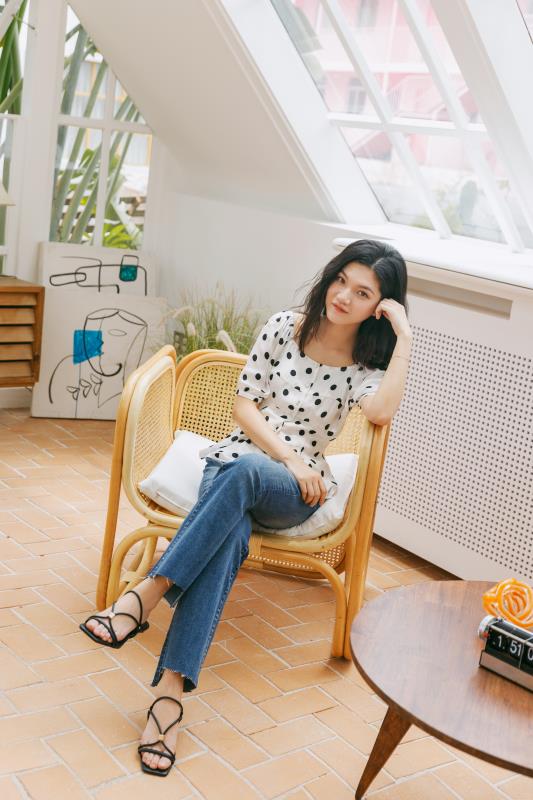 波点元素最适合营造法式风情了,简单搭配牛仔裤就很罗马假日~方领的设计浪漫又优雅,特别适合现在这个早春的季节~