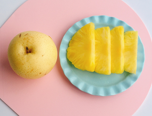 半个菠萝,苹果1个,梨1个,冷面适量;
