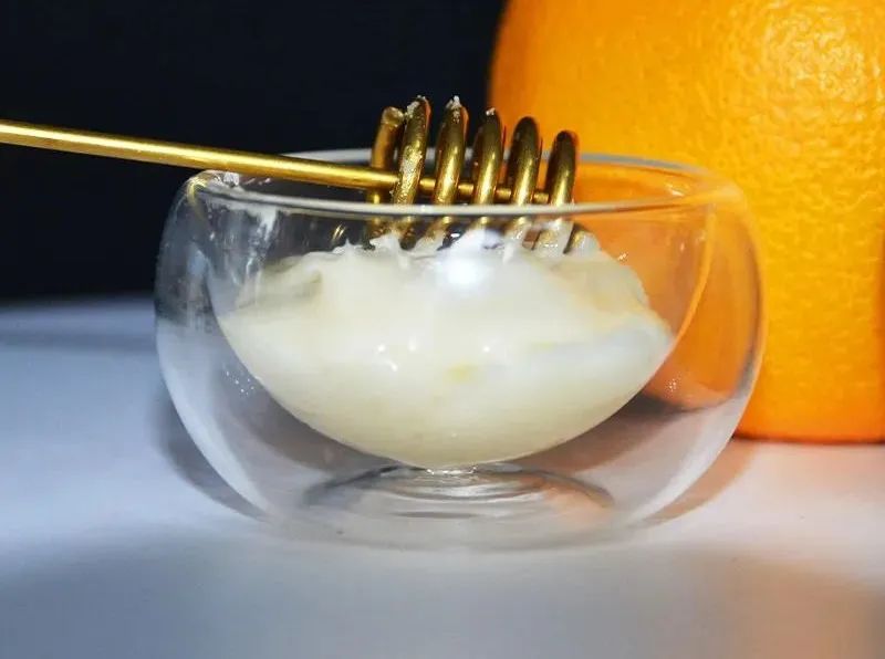 看着就跟羊脂膏一样,稠如凝脂、洁白如雪的龙江森工黑蜂雪蜜。