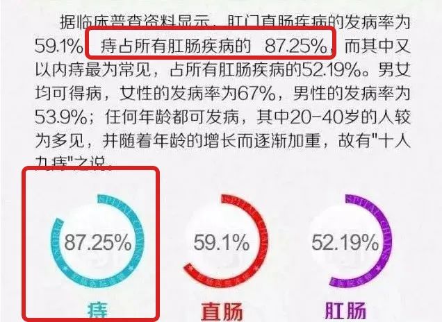 痔疮占所有肛肠问题的87.25%,女性痔疮率高达67%,相当于10个女人7个有痔疮!
