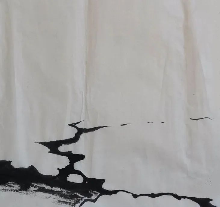第一步:画出不冻河。用笔流畅,墨要有浓淡,画出平远的效果。