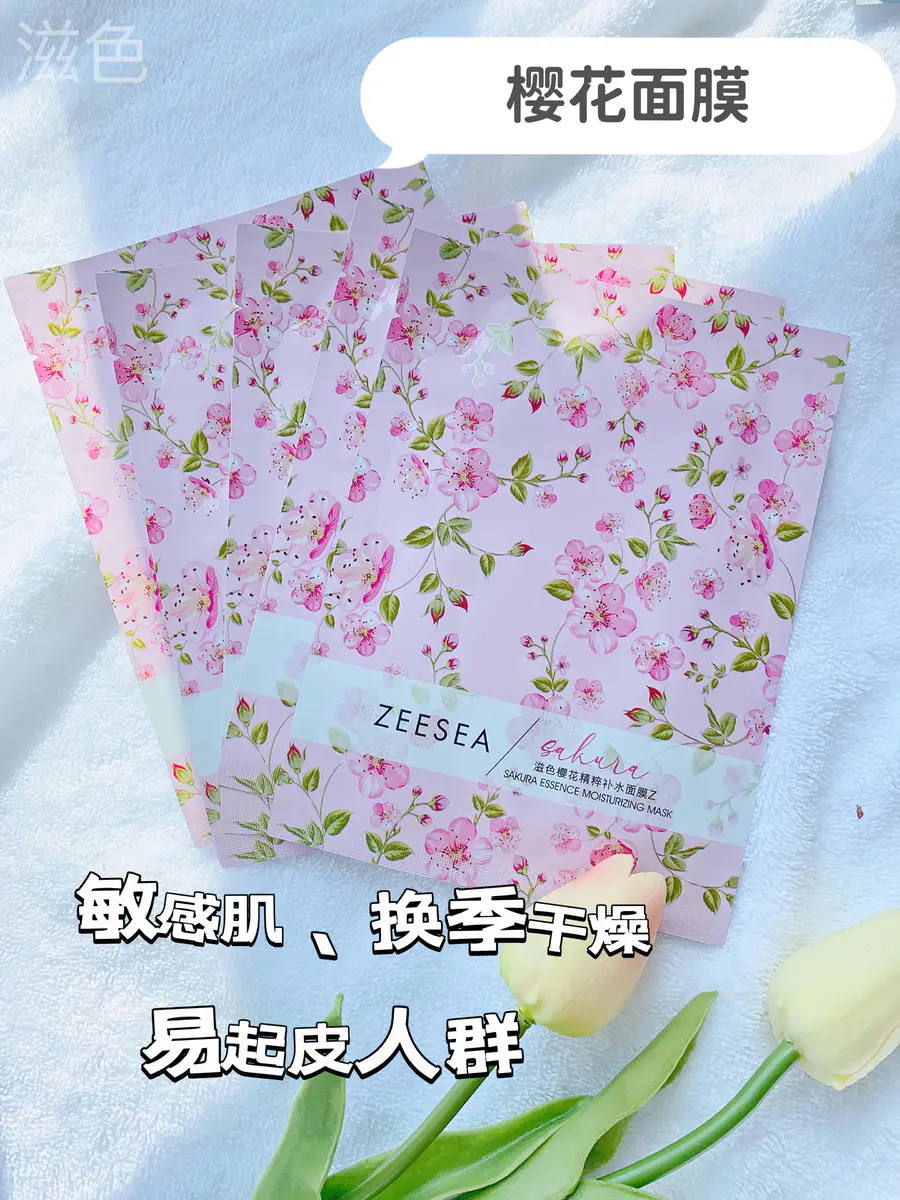 樱花面膜:蕴含日本晚樱精华+8D透明质酸,滋润补水、修护肌底,特含贻贝抗过敏肽专利,敏感肌也能安心焕颜~