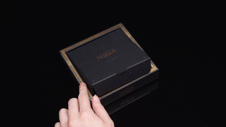 纯手工的折叠礼盒,似乎还残留着匠人的温度;亚光黑的牛皮纸搭配烫金LOGO和镶边,再加上触感细腻的丝绒。
