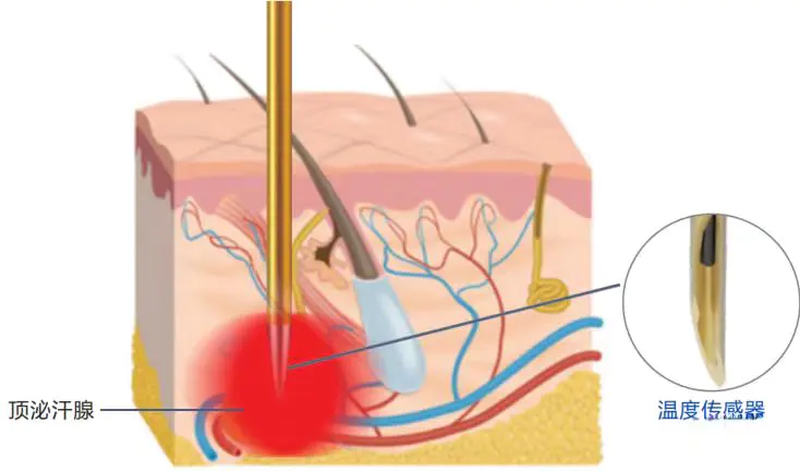 因为它的治疗深度、温度可以精细调节,所以可以直接作用于腋下的大汗腺,比术式切除创伤要小得多、还不容易留疤。