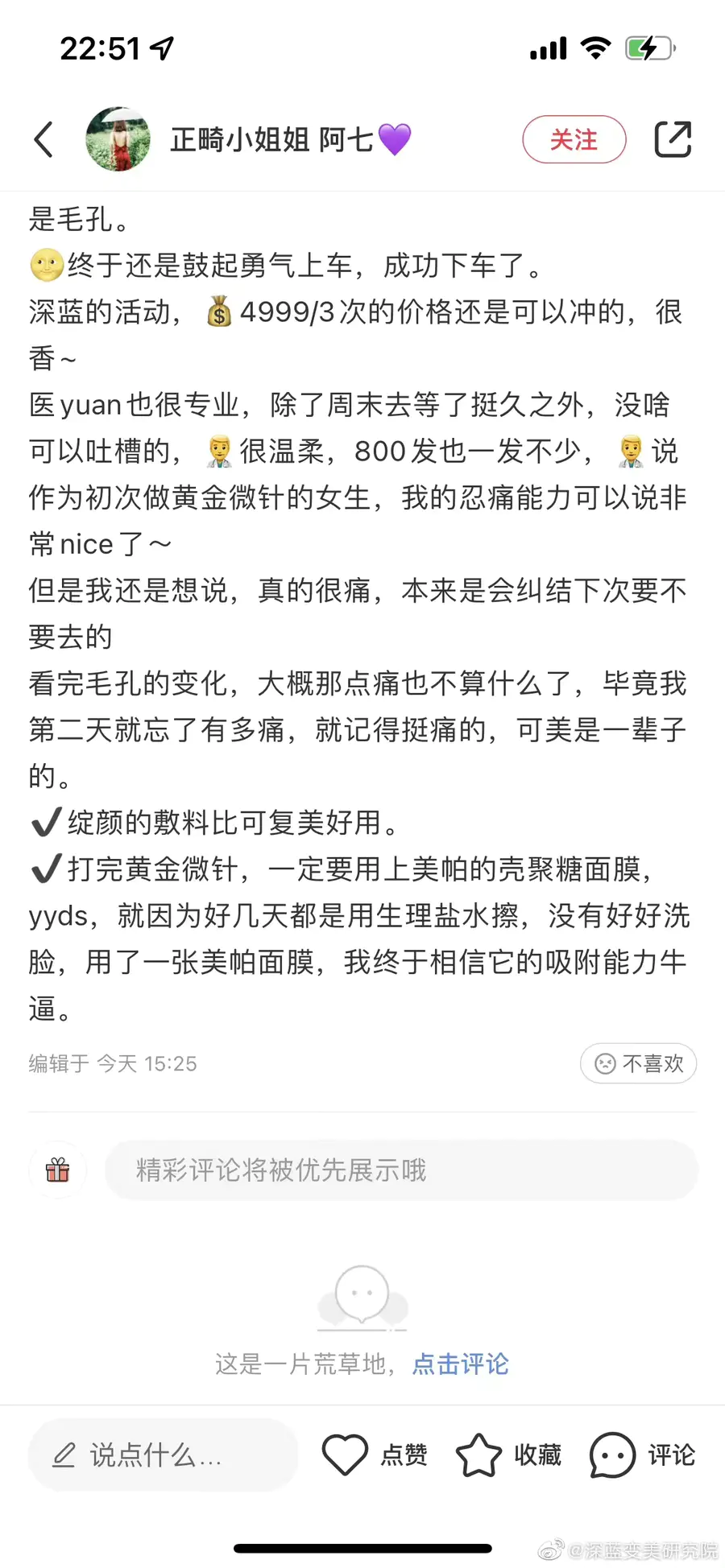 一起来看看姐妹们的深蓝独家黄金微针体验反馈吧~