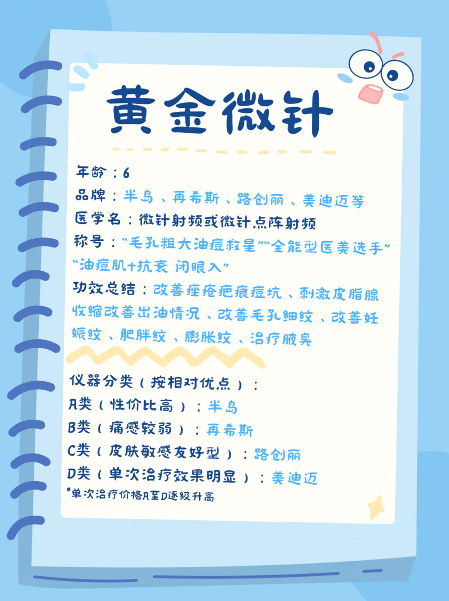 A:对医美有所了解或者看过科普的朋友应该知道,点阵激光也能改善痘坑、毛孔粗大等问题,那为啥选择黄金微针而不是点阵激光呢?