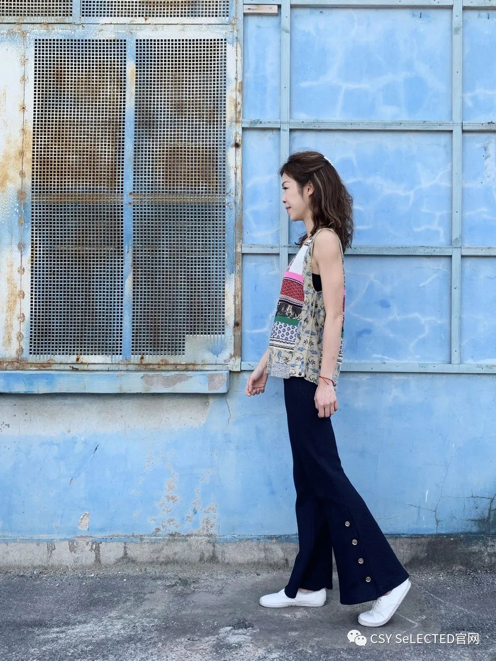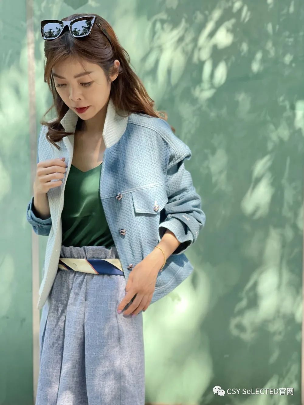 我喜欢选择针织外套,不怕皱又轻薄,配搭一条阔腿裤时尚又优雅。颜色可以挑简约一点但带有细节设计的,无论是撞色夹边、小珍珠钮扣还是布料织纹,都是设计的点睛之笔!