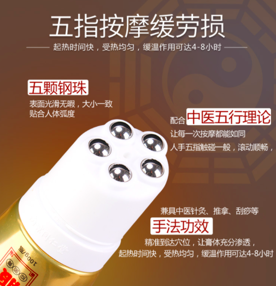 按摩滚珠促进了毛孔发热、打开,使得药性被更好吸收。