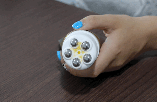 抑菌膏自带5颗光滑滚珠,只要扭动头部打开开关(OFF→ON),在痛的部分滚一滚,膏体就会均匀分布开来,边按摩边吸收。