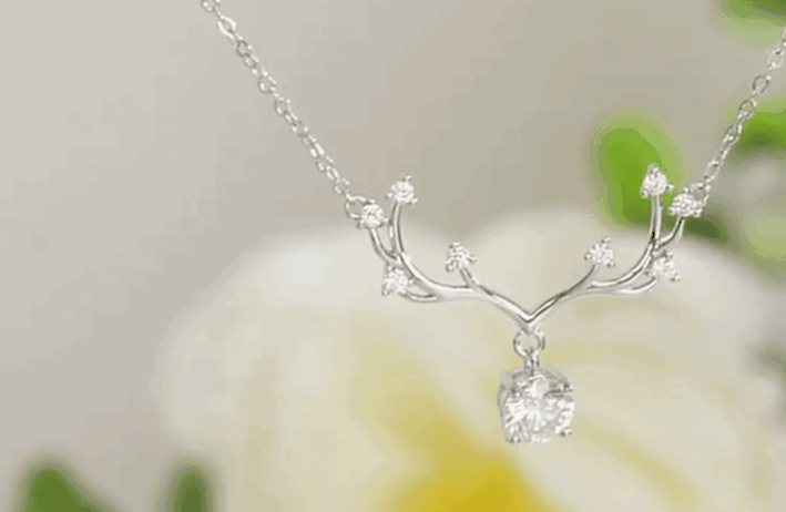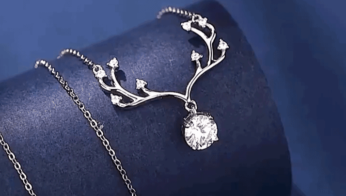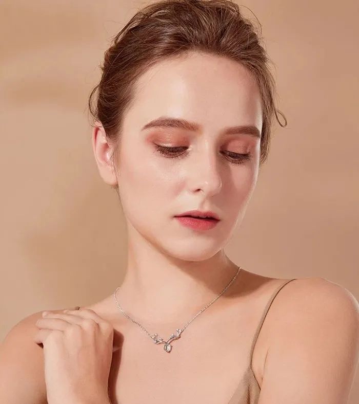 项链吊坠中采用了鹿角设计,完美诠释了“义无反顾、众生相守”的感情!作为情人节礼物,也是对两人爱情的美好祝福!