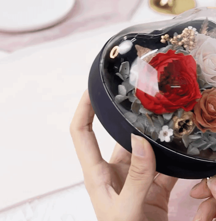 永生玫瑰花的外面是一层透明隔氧罩,看起来就像童话故事里的水晶球!给她童话一样的爱情!充分满足她的少女心!