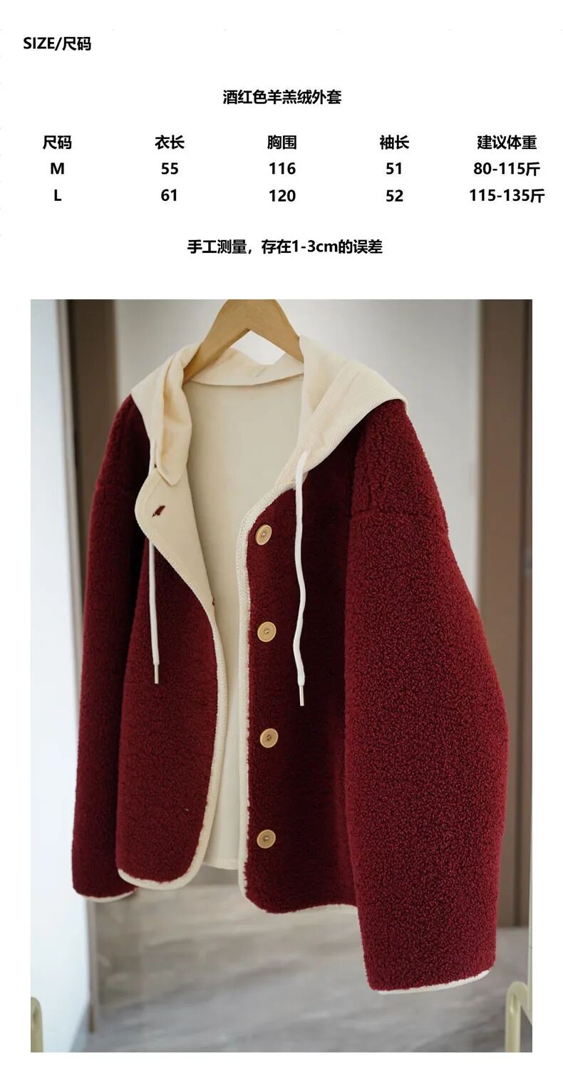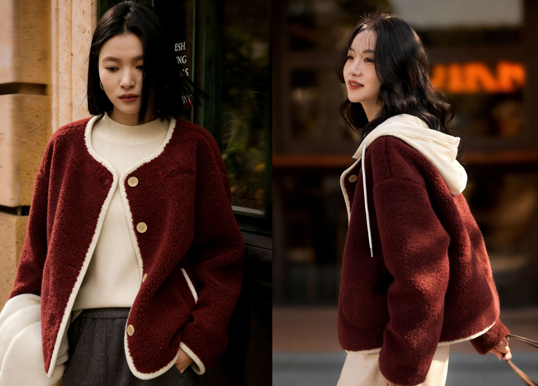 降温刚需,是时候来件暖和的厚外套了!这件酒红色羊羔毛外套,藏着锁温黑科技~